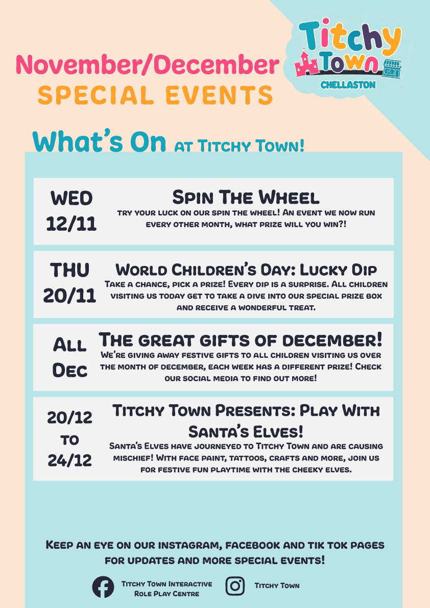 We run special events every month at Titchy Town, take a look at all the fun and exciting things we have coming up at our interactive role-play village!​